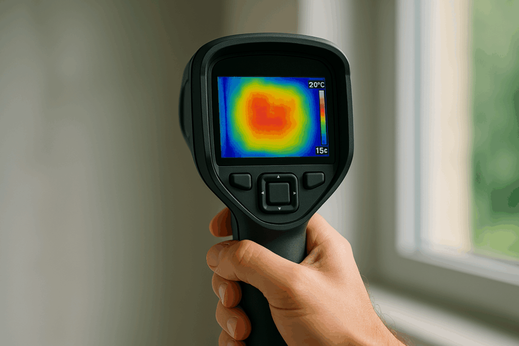 Käytämme lämpökameraa tunnistamaan tarkasti ongelmakohdat, kuten kylmäsillat tai vuotavat tiivisteet – näin toimenpiteet kohdistetaan oikein ja kustannustehokkaasti.
